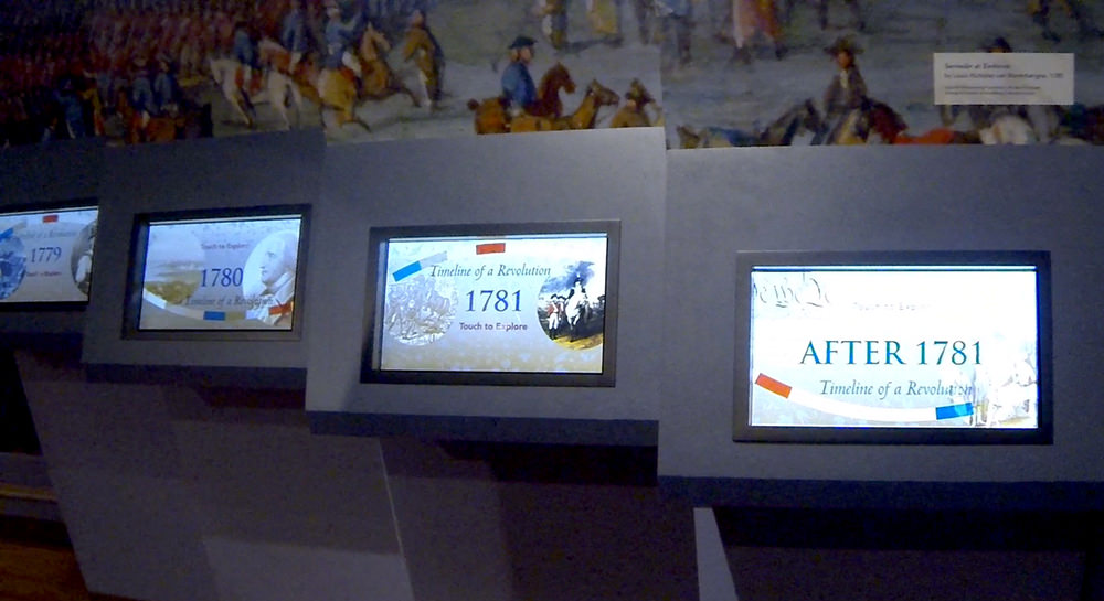 An 8 Brightsign player exhibit that puts events of the Revolutionary War in a larger context.