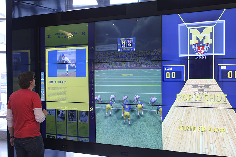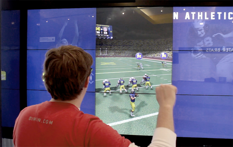 The University of Michigan is a very big school with a very big list of outstanding athletes and staff. And they had a very big challenge for Perfect Prototype and our partner Dimensional Innovations: create a visual experience that is both massive and personal. That meant blending the innovative technologies of Kinect gaming and augmented reality with other clever interactives and traditional electronics.